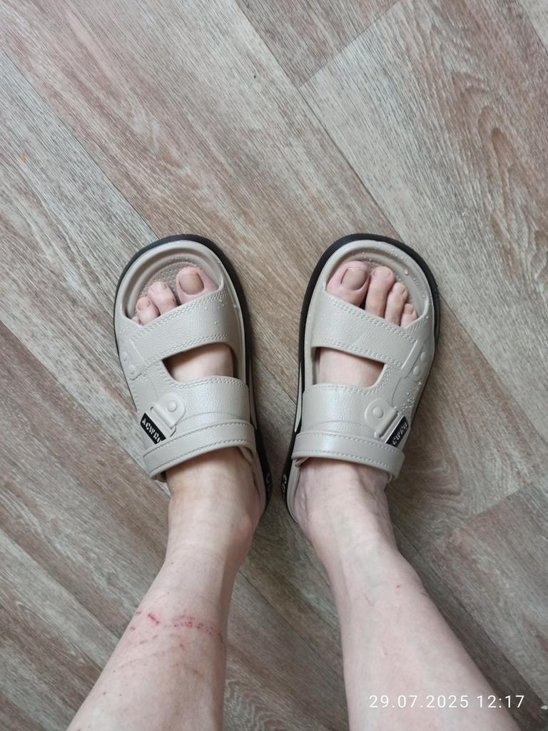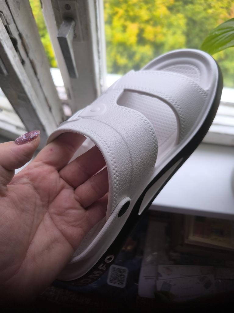 The sandals are very comfortable, bright white, neat. It's a pity that summer is over. Thank you very much for such a wonderful attitude towards the customer. The product is packaged with the desire to please the buyer. Lately, such an attitude is not always shown on Joom.