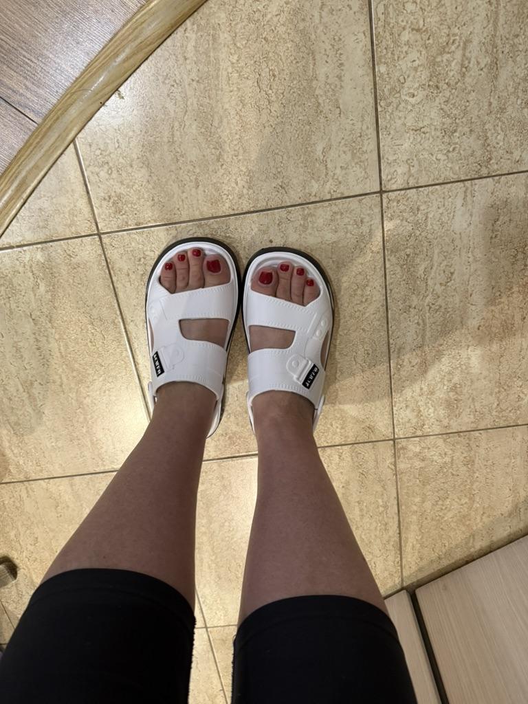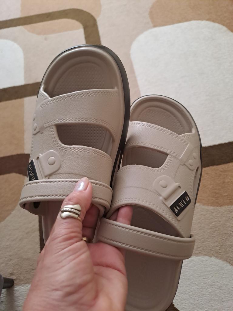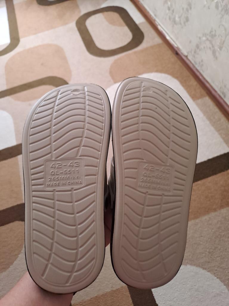 Excellent summer flip-flops-sandals. For size 43, we ordered 44-45, they fit πperfectly. The color is magnificent (super-white). Odorless. Thank youππ