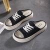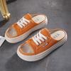 Internet Celebrity Canvas Half Slippers Women Wear Ins Tide 2025 Summer New Fashion Versatile One-word Drag Thick Bottom Cool Slippers