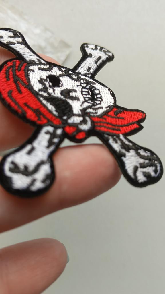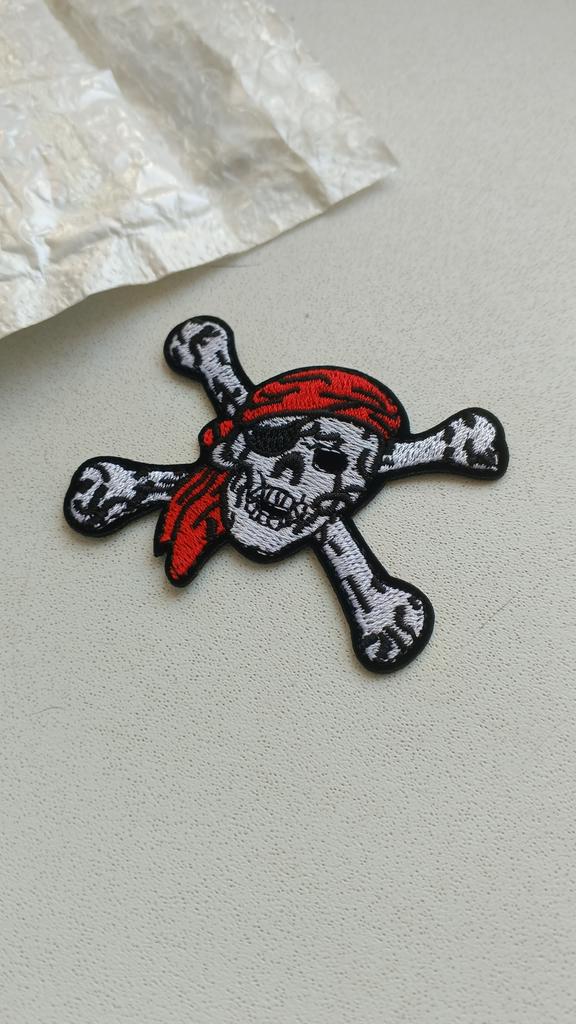 Pirate Skull Clothing Patch 😊 Feel like a real pirate with this fun patch to personalize your clothes 🥰 Super cute and sweet with authentic soft colored thread embroidery. The back is heat-sealable, so you can adhere it with heat, such as from an iron. However, you can use other methods, such as sewing it by hand or gluing it with cold-melt fabric glue.. I've ordered several to make clothing designs and customizations, and they're beautiful and high-quality, with very well-done finishes. The shipment was fast, less than a month to arrive in Spain with tracking until delivery.
