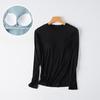 VEZFAA Women's Fashion Casual Spring Autumn Solid Color Print Long Sleeve O-Neck Blouses & Shirts