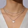 Vintage Double Round Charm Layered Necklace Women's Jewelry Layered Accessories for Girls Gifts Bohemian Fashion Pendant