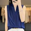 VEZFAA Women's Fashion Casual Summer Spring Solid Color Print Sleeveless V-Neck Blouses & Shirts