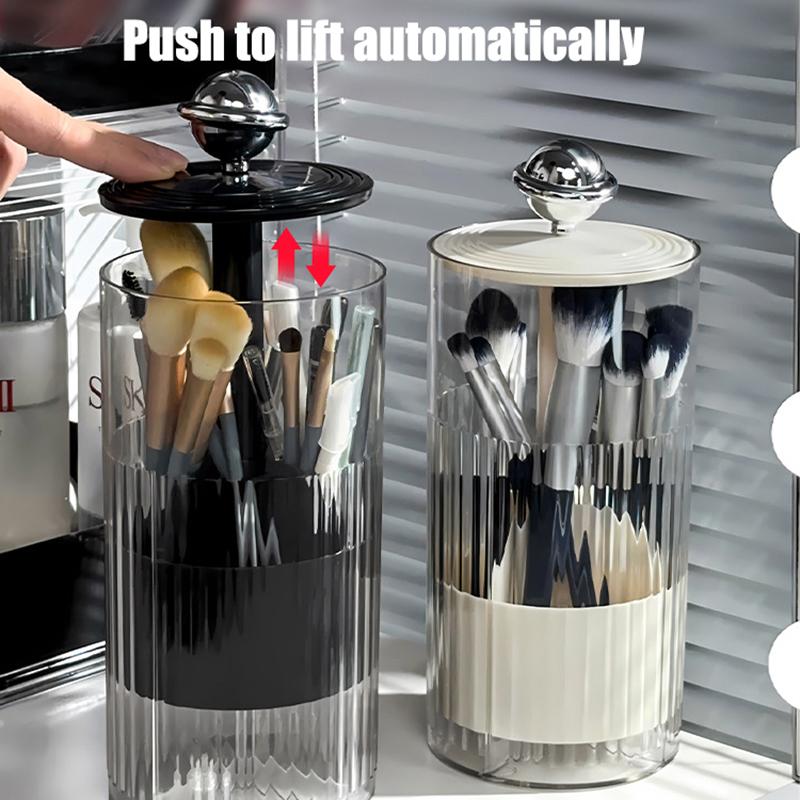 Automatic Lifting Makeup Brushes Holder With Lid Dustproof Makeup Organizer For Vanity Cosmetic Storage Box Lipstick Container