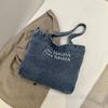 Vintage American Denim Canvas Bag, Large Capacity Embroidered Shoulder Bag, Student Class Commuter Handbag