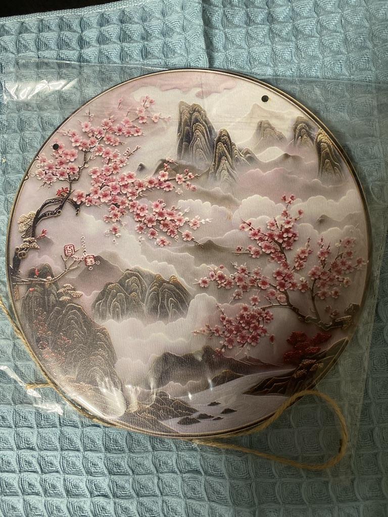 The picture is very beautiful, but it has two unnecessary holes where it can theoretically be hung. They provided a cheap piece of string with it.