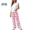 Stylish Design: Embrace fashion with the trendy ruffle sleeves of the short-sleeved top, complemented by charming love prints that add a touch of elegance to your loungewear collection.