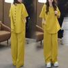 Summer Women's Loose Fashion Suit Sequined Short-sleeved T-shirt High Waist Wide-leg Trousers Two-piece Suit