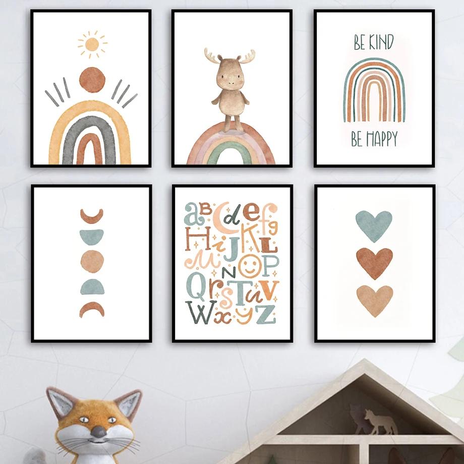 Alphabet Rainbow Gate Deer Sun Heart Cartoon Nursery Wall Art Canvas Painting Posters And Prints Wall Pictures Kids Room Decor