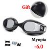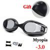 Swimming Caps Swimming Goggles With Ear-plug Professional Anti-fog UV Men Women Silicone Myopia Swimming Glasses