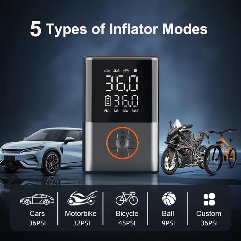 EASY TO USE: You can choose 5 smart modes (car, motorcycle, bicycle, ball, and custom) based on your various inflation needs. You can also easily choose between 4 pressure units as needed (PSI, Bar, kPa, kg/cm²). The custom mode allows you to preset the desired pressure value (3-150PSI) based on the inflatables you want to inflate.