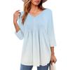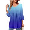 Women's Tops V Neck Three-quarter Sleeve Striped Pleated Casual Summer Fashion Shirt Tops