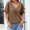 Women's Fashion Casual Drop Shoulder Short Sleeve Deep V-Neck T-Shirt Top