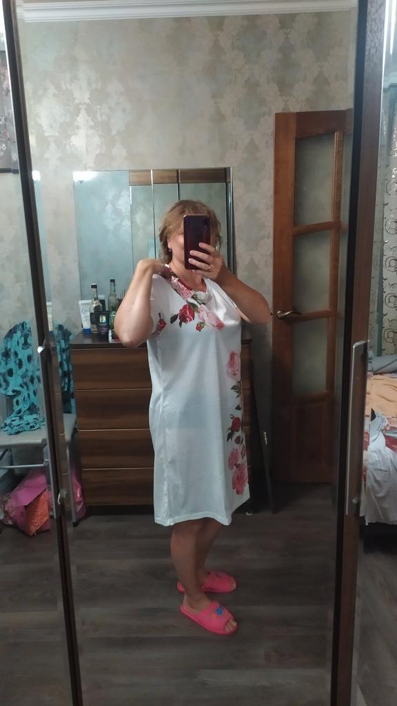 The dress is more for home wear, you wouldn't go out in it. A home dress, a straight cut, or just a large, elongated, beautiful t-shirt!