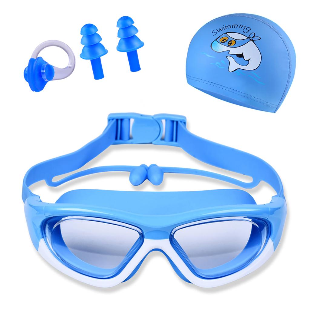 Children's Swimming Goggles Boys and Girls Swimming Goggles Large Frame Goggles One-piece Earplugs Nose Clip Swimming