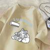 Summer Cat T Shirt for Men Women American Street Creative Funny Air Conditioner Cat T-shirts Cotton O Neck Tee Shirt Streetwear