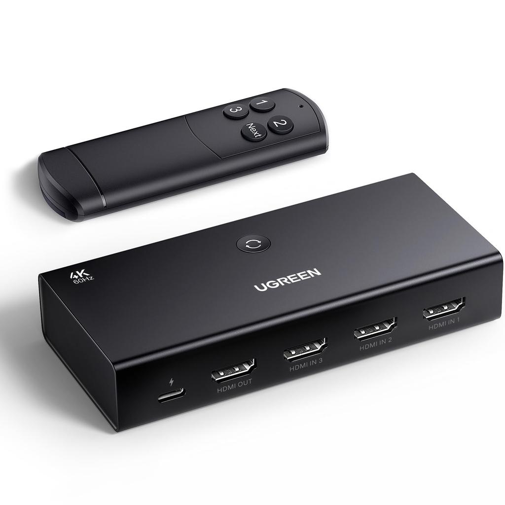 UGREEN HDMI Switcher 3 Inputs 1 Output 4K@60Hz HDMI Switcher HDMI Selector with Remote Control 1080P@144Hz HDCP 2.2/HDMI 2.0 HDR 3D Compatible Manual Switching [Confirmed to work with PS3/PS4/PS5/Switch]