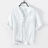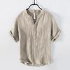 Elevate your summer wardrobe with this retro-inspired men's t-shirt, crafted from lightweight and breathable polyester material for ultimate comfort. Featuring a solid pattern, this short-sleeve top showcases a stylish stand-up collar and a classic V-neck design, perfect for a casual yet sophisticated look. Whether you're heading to a laid-back gathering or enjoying a day out, this t-shirt is an ideal choice for maintaining a cool and timeless appearance.