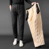 Stay warm and comfortable with these men's large trousers featuring a three-layer thickened design, perfect for resisting the cold. Lined with cozy lamb fleece, these trousers ensure no fur falls out, providing consistent warmth throughout wear. The one-piece design offers a seamless fit, making them an ideal choice for cold weather outings. Ideal for those seeking both style and practicality in autumn and winter attire.