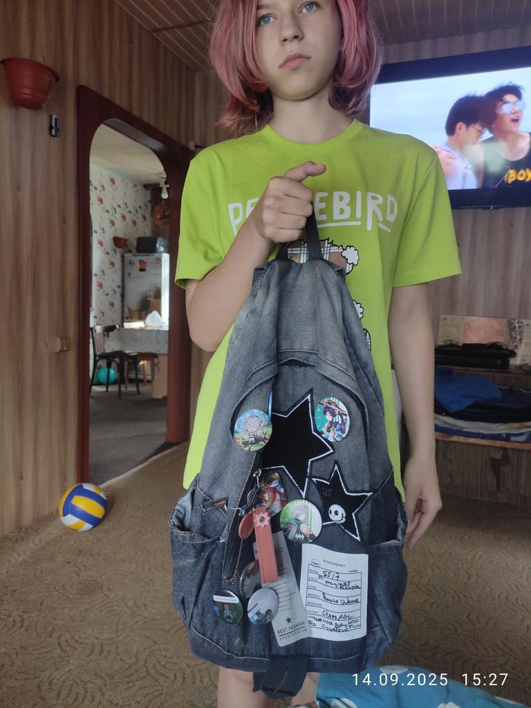 Gradient Denim Star Backpack: Versatile Vintage Schoolbag for Junior High Students