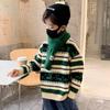 Wrap your young one in cozy comfort with this thick knitted pullover sweater, ideal for the chilly autumn and winter months. Crafted from high-quality polyester, this sweater offers exceptional warmth and softness, ensuring lasting comfort throughout the day. Designed with long sleeves and a stylish half-high neck, it offers a snug fit and a modern look. Perfect for casual outings or special occasions, this sweater seamlessly blends practicality and style for your child's seasonal wardrobe.