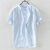 Experience effortless style and comfort with this casual loose fit, lightweight summer shirt. Crafted from a breathable cotton blend, it offers a perfect balance of softness and durability. The stand collar adds a touch of sophistication, while the short sleeves make it ideal for warm weather. Featuring a solid pattern, this versatile piece pairs seamlessly with any summer wardrobe, ensuring you stay cool and stylish all season long.