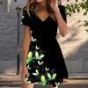 Summer Fashion Women's V Neck Short Sleeve Dancing Butterflies Printed Dress Sex Short Skirt Dresses