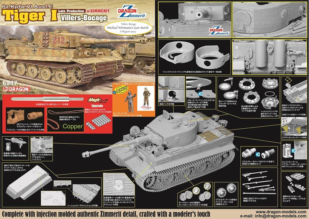 Platts Dragon WW2 German Tiger I Late Production June 1944 Battle of With Gun Printed Muzzle Crew Acrylic Stand Luxury Specification Plastic Model