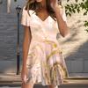 Summer Fashion Women's V Neck Short Sleeve Marble Pattern Printed Dress Sex Short Skirt Dresses