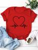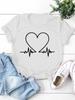 Electrocardiogram Heart Print Women T Shirt Short Sleeve O Neck Loose Women Tshirt Ladies Tee Shirt Tops Clothes Camisetas Mujer