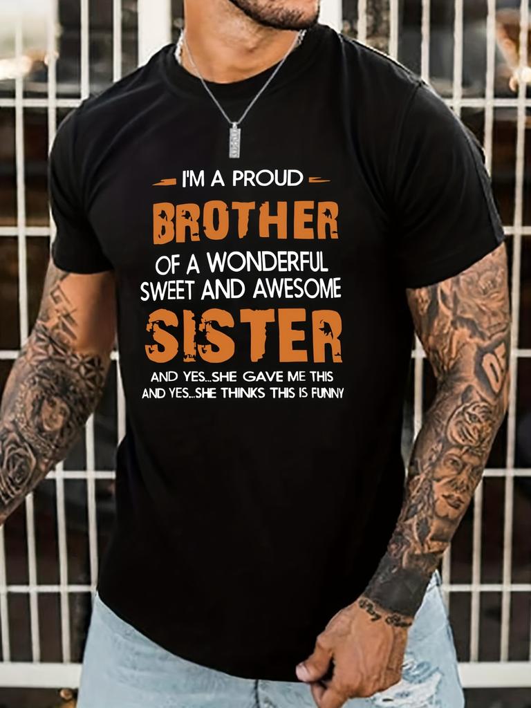 Men's "BROTHER SISTER" T-shirt, Round Neck Tee Casual Clothing, Spring And Summer
