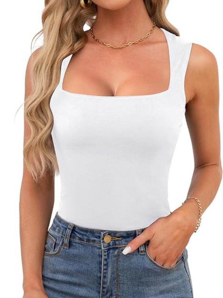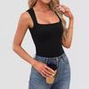 Square Neck Tank Top Rib Shoulder Straps Crop Tops Women Summer Camis Solid Color Camisole Fashion Tube Female Sleeveless Cropped Vest Y2K Clothes