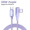 90 Degree Elbow USB C Cable PD 120W Fast Charging Type C Cable For iPhone 15 Pro Max Samsung Xiaomi Charger Data Cord