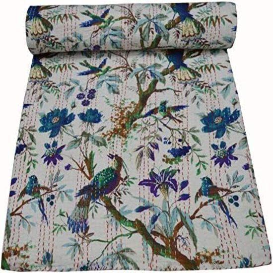 Aizza Trends Handmade Pure Cotton Printed Kantha Quilt - Traditional Look Bed Spread Kantha Gudri - Vintage Hand Stitch Gudri