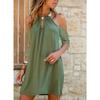 Summer Fashion Women's Sleeveless Strapless Halter Pure Color Lace Hollow Casual Short Mini Dress