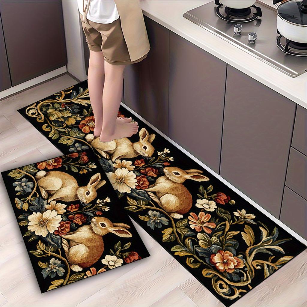 1Pcs Anti Fatigue Kitchen Rugs, Flowers and Plants Print Waterproof Non-Slip Thick Cushioned Kitchen Mat Heavy Duty Comfort Standing Mat for Kitchen