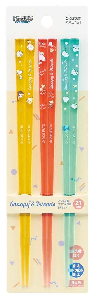 Skater Dishwasher Safe Acrylic Chopsticks 21cm 3 Set Adult Snoopy Chopsticks AAC45T-A
