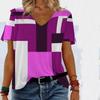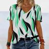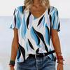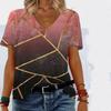 Women's Short Sleeved Fashionable T-shirt with Geometric 3D Printing, Women's V-neck Short Sleeved T-shirt