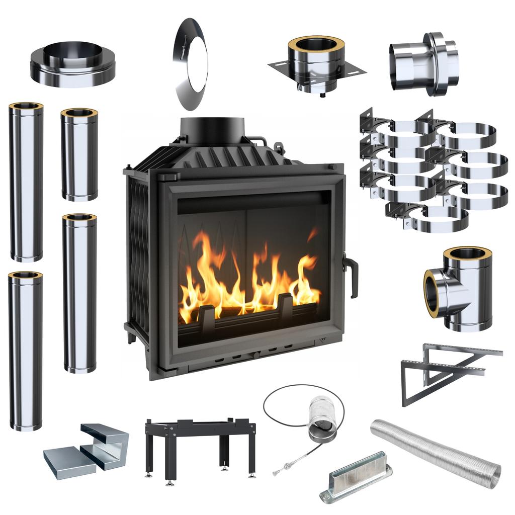 Fireplace Insert KRATKI Antek 10kW Ø 180 Cast Iron External Chimney Set