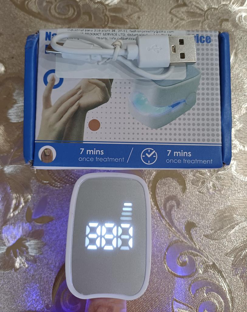 Device for treating nail fungus. I don't know the effectiveness, as this requires a long period.