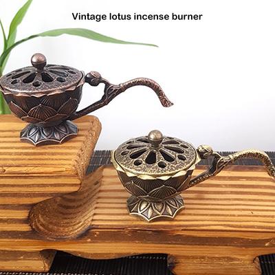 Metal Lotus Incense Burner Bowl Incense Holder With Handle Yoga Meditation Home Decor Ancient Style Alloy Incense Burner