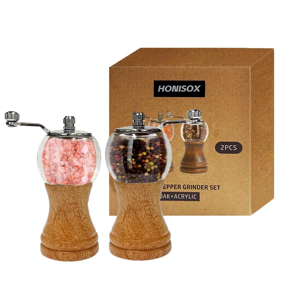 Wood Salt Pepper Salt Grinder Pepper Grinder with Manual Seasoning Grinder Refillable Grinder, & Set, Handle, (5inch-2Pcs)