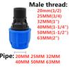 1pcs PE Connector Pipe Fittings 20MM 25MM 32MM Water Tube Direct 1/2" 3/4" 1" Thread Quick Connect Live Joint