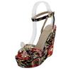 Liyke Fashion Design Metal Butterfly Open Toe Wedge Sandals For Women Flowers Cloth Platform High Heels Summer Party Dress Shoes