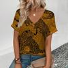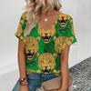 Summer Clothing V-neck Sexy Leopard 3D Print T-shirt Animal Pattern Women's Shirt Short Sleeve Street T-shirt