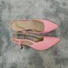 Women Sandals Summer Pointed Toes High Heels Sexy 5cm Low Heels Casual Back Strap Pumps Red Dance Wedding Shoes Large Size