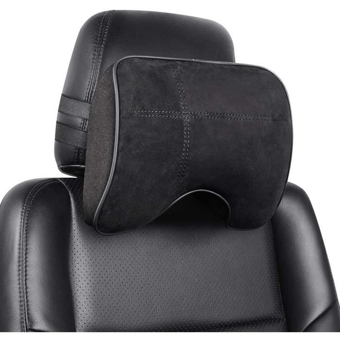 Coussin Appui-Tête - EASY EAGLE - Noir - Cuir Suédé - Mousse à Mémoire - Confort Optimal