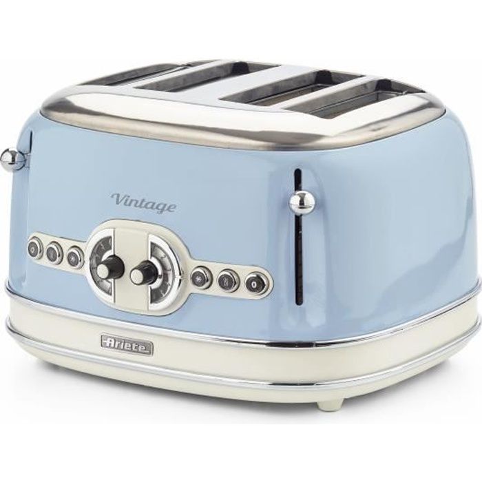 Grille-pain vintage 4 tranches - ariete - thermostat 6 positions - fonctions décongélation, réchauffage et toast