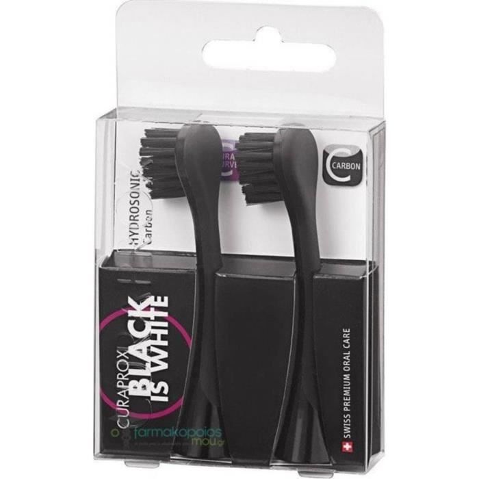 Brosse à dents électrique - curaprox - black is white - 2 têtes - filaments de carbone - noir