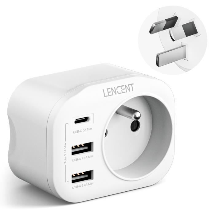 Lencent adaptateur prise australie/chine/argentine/au,4 en 1 -2 usb +1 type-c + 1 ac,pour france vers les pays des prises de type i